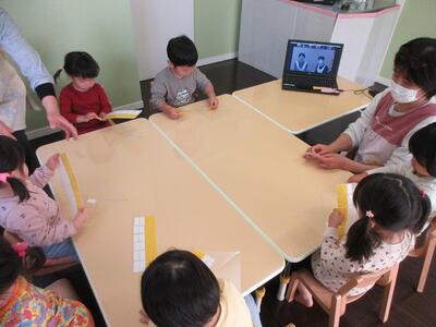 子ども達は秋にさつまいも掘りをした経験から、みんなで大きなおいもを作りました。
