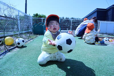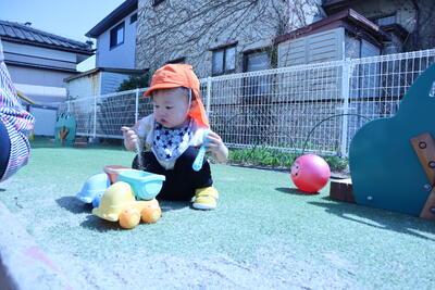 涙で登園してきたお友だちは、園庭に出ると外の砂場や遊具に興味津々いつの間にか涙もなく夢中で遊んでいます。