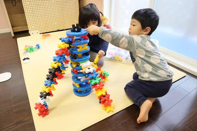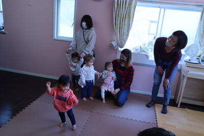 お家の方と一緒に子ども達の大好きなふれあい遊び。子ども達の表情が緩みます
